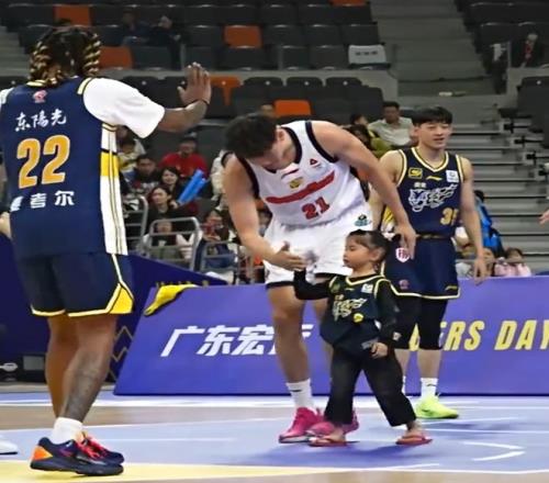 有趣!5岁小女孩穿着人字拖,面对5名广东队球员的防守,完成扣篮